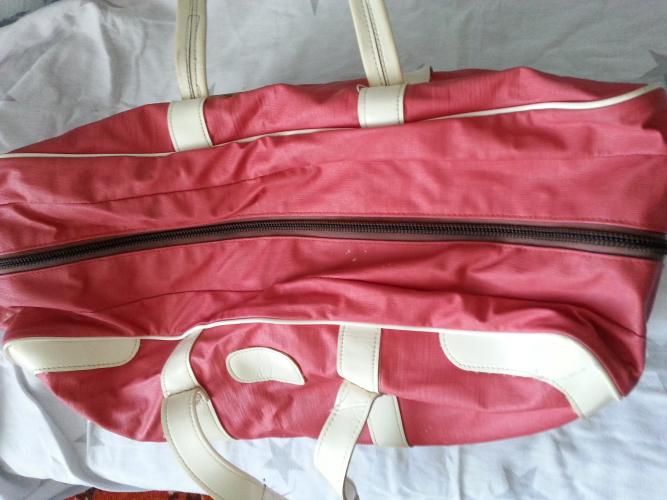 Вместительная 54х20х34 см. в хорошем состоянии, молния работает отлично. Цвет красный, хорошо заметна на багажной ленте в аэропорту, компактно складывается