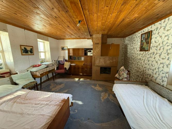 участок 19 сот., дом 30 кв.м. (однако дом фактически больше в 2 раза), дом официально зарегистрирован. Печное отопление, газ подведен до участка. Есть баня, 2 теплицы, все посадки